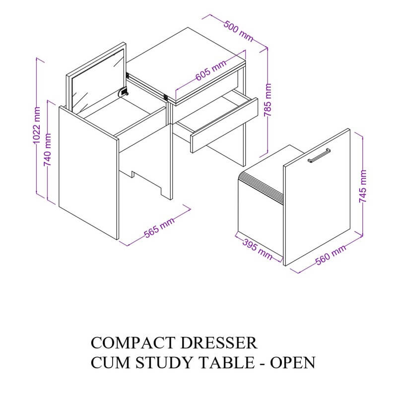 MYSA blends the functionality of a compact dresser and a study desk into one transformative piece. With its soft-closing mirror and open-storage shelf, an ample storage drawer, a pull-out table and a seat that provides additional deep storage space, MYSA adapts effortlessly to your needs.