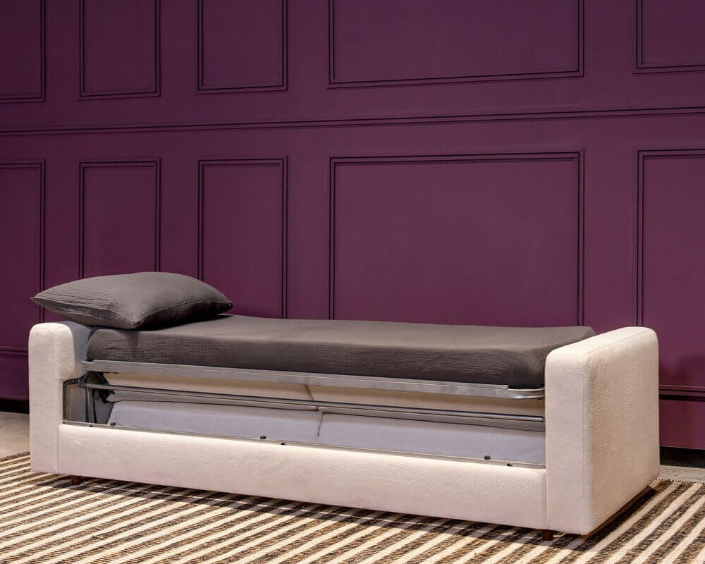 Get all the soft edges and fabric comfort of a sofa in your single bed. The PIVOT is the perfect solution to make more space in one room. For unexpected gatherings, unplanned sleepovers, late night movie marathons, gaming sessions and more, the PIVOT sofa bed will be by your side through it all!